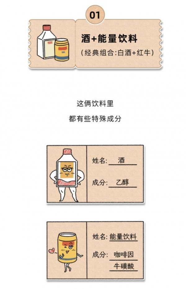 而酒精是抑制神经的,两者一混,身体会出现"矛盾信号":