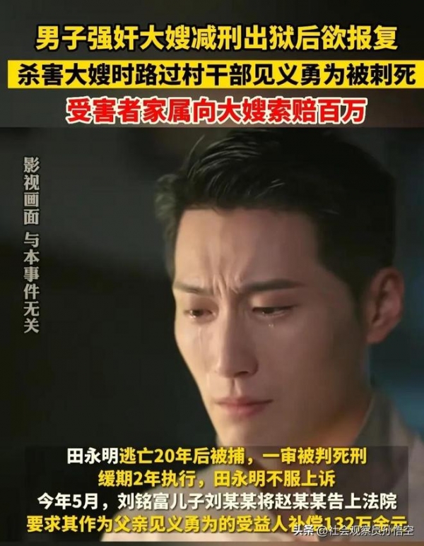 刘铭富已经牺牲20多年了,他的儿子长大了,现在想到为父亲维护权益。在当时家里人不懂法,没有得到赔偿,只有"见义勇为"称号。有网友说受害者家属为什么不向田永明索赔呢?因为田永明已经被判死缓了,他都50岁了,他爹妈都已经七老八十了也无力赔偿。