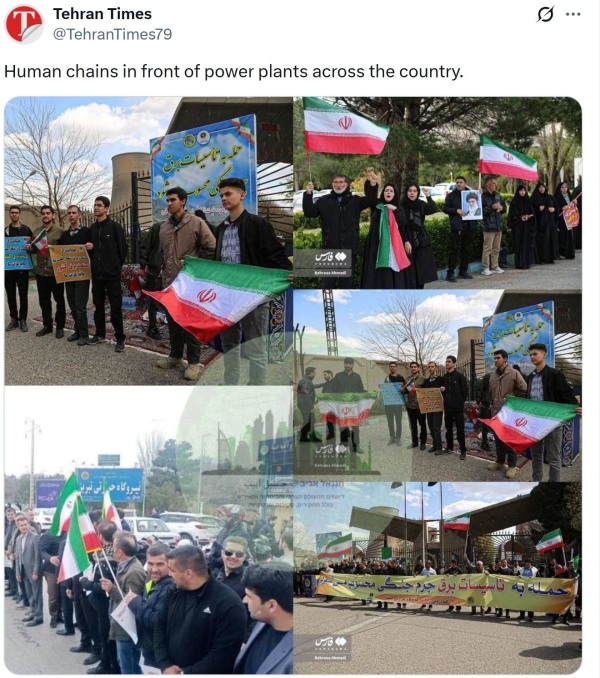 当地时间7日,伊朗《德黑兰时报》在X平台发布消息称,目前伊朗国内多地发电厂前,都出现了"人链",也即民众携手并肩,作为对美国威胁打击伊朗发电厂的回应。
