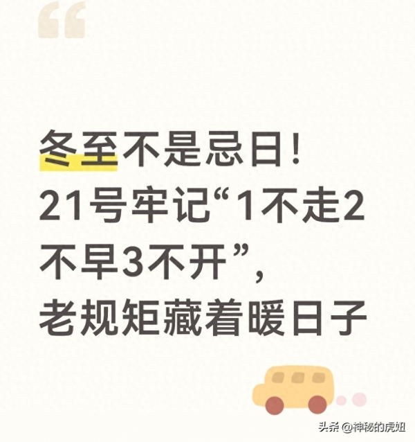 2025年12月21日就是冬至,这几天不少人刷到"冬至是忌日"的说法,其实这是妥妥的误解!老辈人眼里,冬至是"亚岁",是一年里夜最长、昼最短的日子,更是全家围坐吃热乎饭的好日子,哪是什么忌日?只不过这天的老讲究不少,"1不走、2不早、3不开、4要腌、5要吃",每一条都藏着过日子的温暖门道。