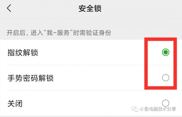 点击之后,接着就会出现一个安全保障的设置,那么在这里呢,我们同样点击一下【安全保障】,然后我们就会看到一个【安全锁】的开关,那么这个开关默认情况是关掉的,我们要手动给它打开。我们可以选择指纹和手势密码解锁,如果支持指纹呢就设置指纹,不支持呢就可以选择密码解锁!