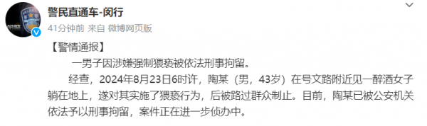近日,上海发生了一起令人愤怒的事件。一段视频在网络上流传开来,画面中一名男子对倒在路边的醉酒女子进行猥亵,场面令人触目惊心。视频里的男子不顾周围的目击者,肆无忌惮地抚摸着女子的臀部和胸部,竟然在众目睽睽之下进行了如此恶劣的行为,警方发布通报称:已将该男子刑拘,视频曝光后瞬间引发全网关注!