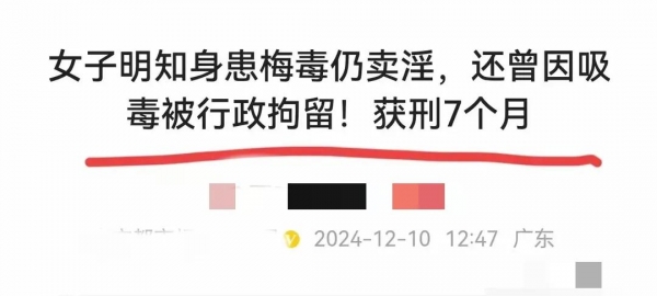 近日,一名韶关卖淫女子被警方扫黄活动中抓捕归案。卖淫女子姓张,在上一年的八月份一次从事卖淫后回到家,发现自己身上开始出现持续的皮损,瘙痒,并且尿道红肿发痛。