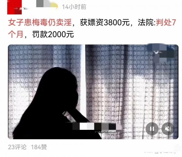 但是由于法律中对这种行为量刑不高,因此该名女子被抓捕归案后被判处了七个月的拘留以及罚款2000元,但是他卖淫获得的嫖资却只有3800元,因此现在之下他还存赚了1800元,并且在入狱期间警方还会给他进行治疗,而这些嫖客却由于这名女子不主动告知,而和患上了无妄之灾,实在是非常可恨。