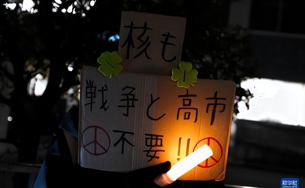 中国一系列措施,从水产禁令升级到文旅降温,日本企业损失惨重。股市下跌,渔业协会和商家直接抗议,堵在自民党总部外。民众游行从东京扩散到其他城市,12月23日晚,首相官邸前再次集会,要求高市撤回涉台言论,并批评安保官员的拥核言论。