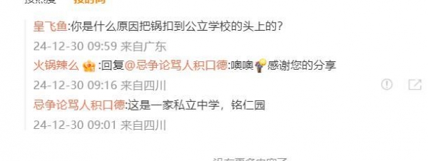 其次,在评论区中,一名网友认出事发学校,根据校服,推测是四川达州的铭仁园,而翻看这名网友的IP地址,显示在四川。