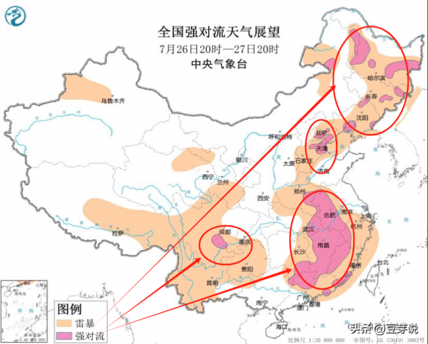 时间来到7月25日晚至26日晚,降水范围略有调整,但强度不减。内蒙古中东部、东三省大部、京津冀北部以及江南、华南的部分地区,将继续面临强对流天气的考验。特别是湖南南部、江西、浙江中南部等地,雨势或将进一步加大,公众需做好防雨防涝的准备。