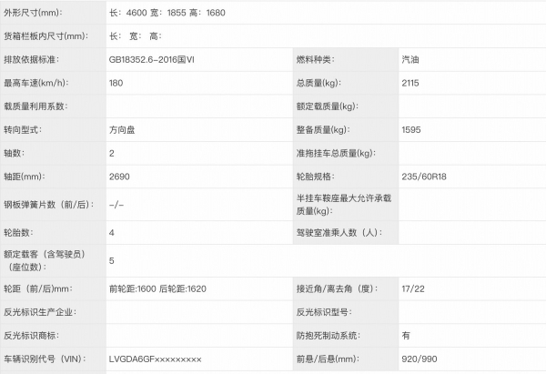 新一代威兰达2.0升车型申报信息