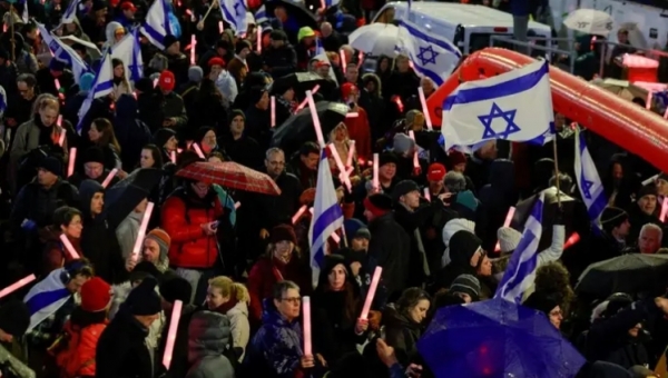 今年3月,以色列人举行集会要求内塔尼亚胡政府带回被扣押人员。 路透社
