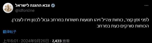 以军称在黎以边境开火 以军最新推文截图