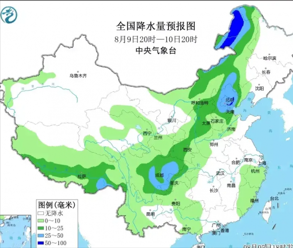 这场降雨的影响并不局限于北方,8月9日当天,降雨范围将继续向南扩大,部分地区有新一轮的暴雨和大暴雨,华南等地也开始入夏以来罕见的降雨过程。