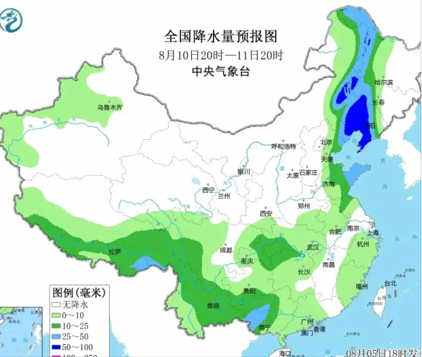 到了8月11日,超级大暴雨级别的降雨将扩大到东北地区,而此时南方地区开始转凉降雨,有望缓解此前一段时间持续高温的酷暑。