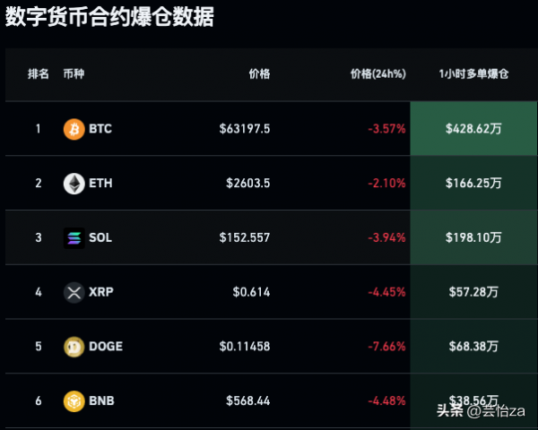 比特币价格昨晚真是让人目瞪口呆!本来还在66000美元高位上稳稳当当,结果一转眼就掉到了63000美元,跌幅超过4%,这还是轻描淡写的说法,鲜活的现场就是8万多人"爆仓"的惨烈,损失还超过了23亿美元,要知道,这可不是小数目,足够让不少投资者的心脏"咯噔"一下