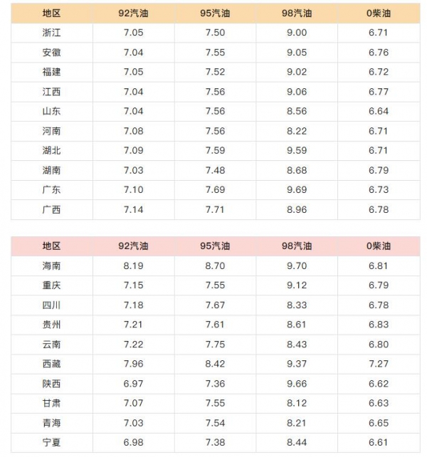最新价格请看下方油价列表
