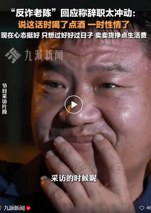 2024年11月15日,"反诈老陈称当年辞职太冲动"登上热搜。据悉,"反诈老陈"曾在接受采访时称,当年辞职太冲动,没看透自己。