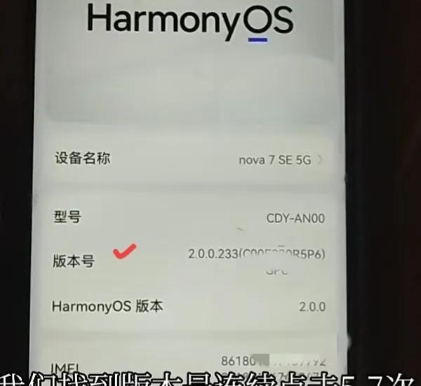 我们找到版本号,连续点击5-7次,这里次数需要根据手机型号而定,