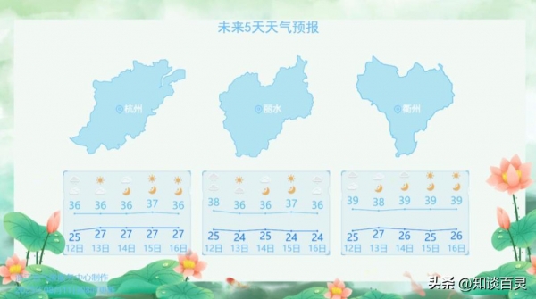 同时浙西(衢州、金华、丽水)要注意高温预警,13-14日持续高温35-38℃,局部39℃以上。