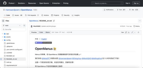 据悉,该项目的作者均为此前MetaGPT的核心贡献者,而相较于Manus背后的Monica,其实MetaGPT此前的知名度还要更高一点。MetaGPT是国内AI Agent创业公司DeepWisdom(深度赋智)于2023年发布的一款多智能体协作框架,当时一经开源,就火爆全网,如今在GitHub上已经收获了49.7k stars。