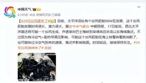 先说大家最关心的台风事儿。太平洋深处藏着个叫96W的台风胚胎,这玩意儿不简单,发展时间长,潜力还大。据中央气象台说,17号前后西北太平洋可能生成24号台风"海神",之后会往巴士海峡、菲律宾吕宋岛东边海域靠。