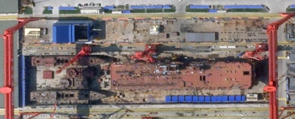 太震撼了!前所未见!中国造船厂惊现神秘"双舰岛巨兽",是航母新变种?