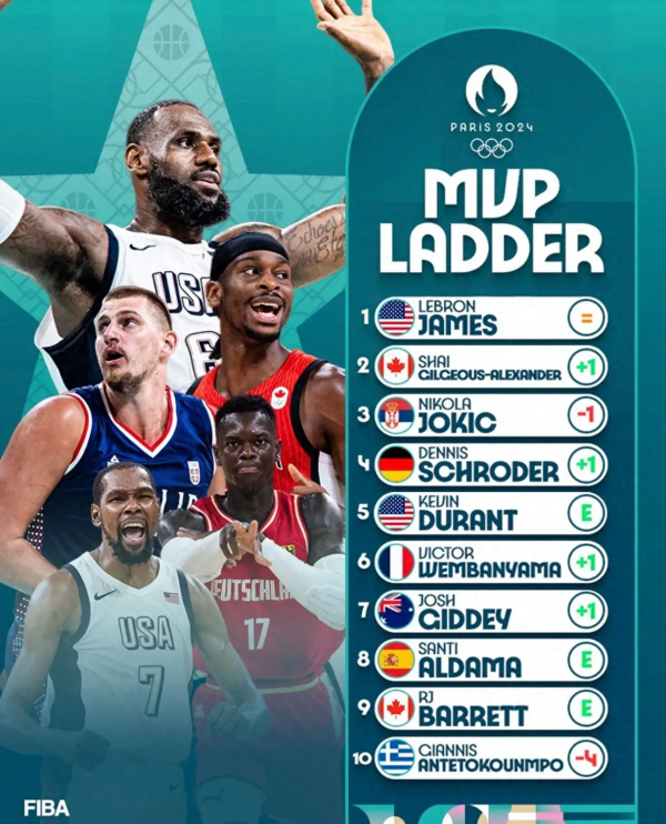 北京时间8.3日,FiBA.官方公布最新的MVp榜单,这一次榜单和上一期有了很大的变动:美国男篮只有两个人上榜,詹姆斯和杜兰特。