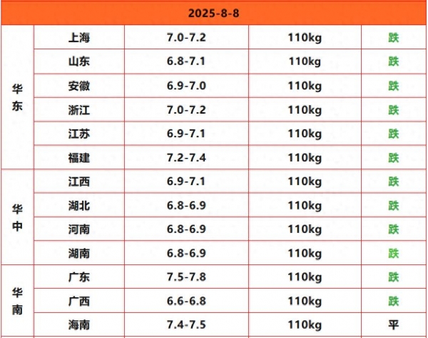 明天是2025年8月8日,明日猪价跌势不减!猪价又是一片绿。上涨地区0,下跌地区22,平稳地区4。