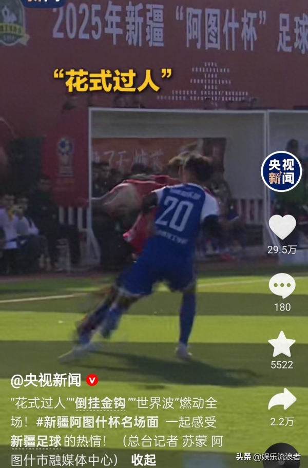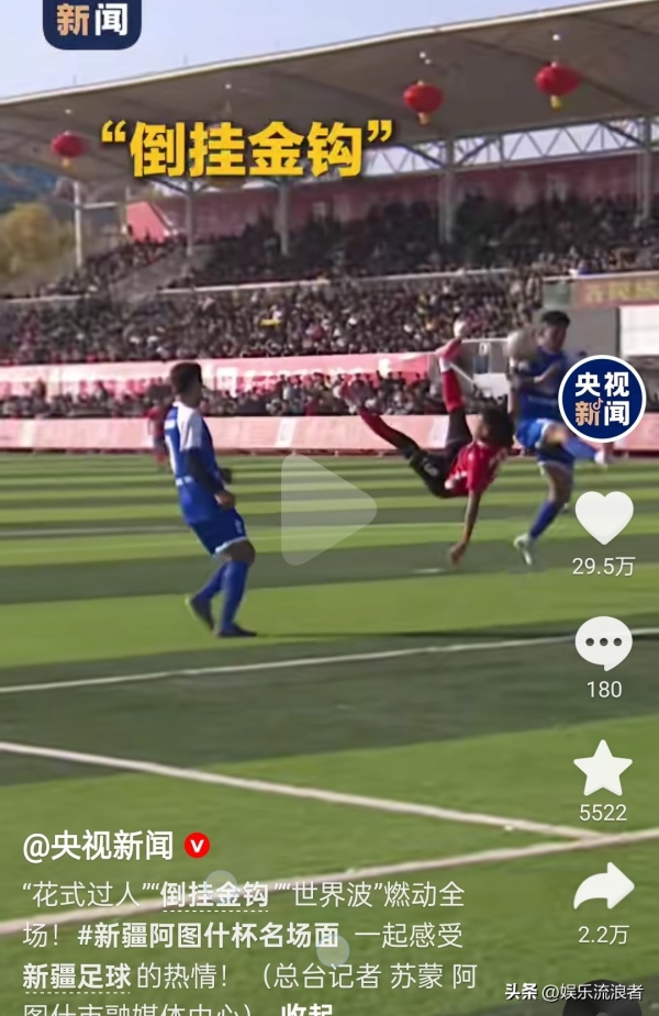 当花式过人如蝴蝶穿花,倒挂金钩凌空舒展,一记"世界波"直挂死角--新疆阿图什杯足球赛的赛场,彻底被热爱点燃!2.2万名观众挤爆现场,欢呼声、呐喊声穿透戈壁,每一个精彩瞬间都让人热血沸腾。