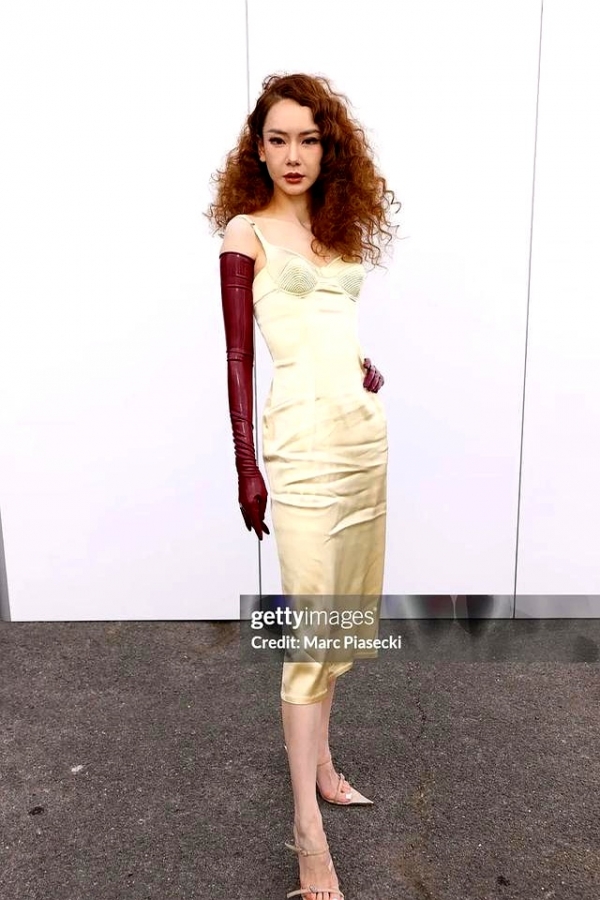 去年米兰时装周,她穿廓形西装还能藏住骨架,今年直接选吊带,等于把短板摊在聚光灯下。