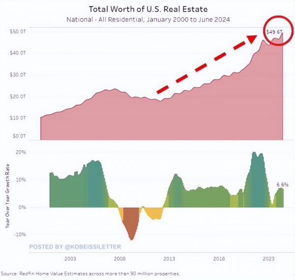 截止到今年6月份美国的房地产总价值创下了49.6万亿美元的新纪录。