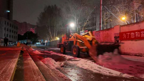 夜色中,大家分工明确、默契配合:有的挥舞铁锹铲除积雪,有的用扫帚清扫残余雪渣,有的推着推雪板开辟主通道,有的撒布融雪剂防止路面结冰。凛冽的寒风刮在脸上像刀割一样,大家的帽子、围巾、手套很快被雪花打湿,手脚冻得通红,但没有人叫苦叫累,反而越干越有劲。"看到同事们都在为了孩子和孕产妇努力,我也不能落后。"儿科护士小张一边搓着冻僵的手,一边继续清扫着门诊楼前的积雪。