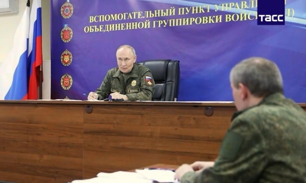 根据今日俄罗斯网站报道,俄罗斯总统普京在视察乌特别军事行动指挥部时,俄军总参谋长格拉西莫夫在场向他汇报了最新的战场态势。