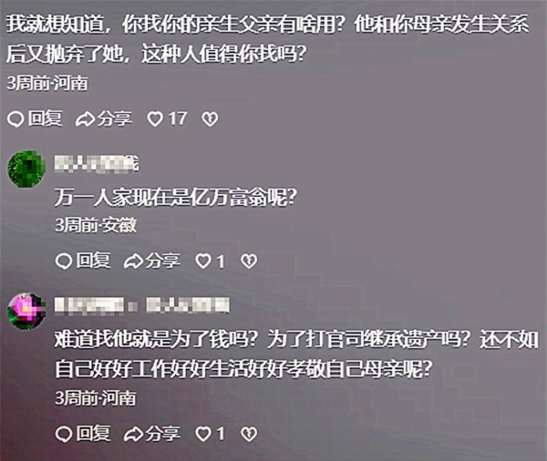 他宣称"一人寻父全家骄傲",要把事情"捅到天上去"。