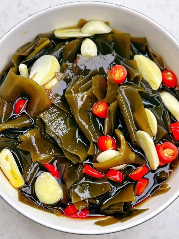 海带含"海带多糖"和碘元素,能清肺热、化痰止咳,抑制呼吸道炎症;搭配醋和蒜末杀菌,专治换季干燥引起的咳嗽、喉咙干痒,凉拌吃清爽又管用!