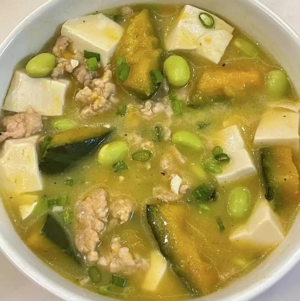 南瓜含β-胡萝卜素和南瓜多糖,能修复呼吸道黏膜、增强免疫力;毛豆是"维C炸弹"(含量是苹果的5倍),促进炎症愈合;虾仁补优质蛋白,三者搭配炒一盘,专治上火引起的咳嗽、皮肤红肿,吃一顿修复力翻倍!