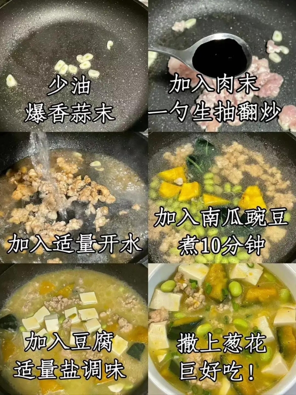 5. 加毛豆、虾仁混合翻炒1分钟,加半勺盐调味即可。特点:南瓜甜糯,毛豆脆嫩,虾仁Q弹,维C+蛋白双补,修复力超强!⚠️注意:毛豆一定要焯水,去除草酸,更易消化。