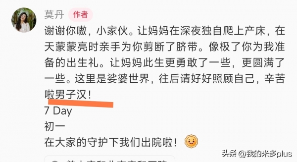 他们当时公布消息的时候,莫丹孕肚都很大了,22号晚上乔杉老婆突然在社交平台上线,透露已经生了!由于小家伙是临时发动,所以莫丹是一个人深夜上产床,妈妈亲手为宝宝剪断脐带,文案里对宝宝的称呼是"男子汉",还说人生圆满了,看来乔杉老婆三胎是个男孩没错了,这下终于凑成"好"字啦。