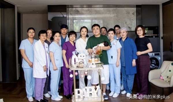 全体工作人员和莫丹夫妇合影留念,乔杉抱着儿子心情大好,家里已经有两个女儿,如今来个男孩,儿女双全的生活谁不羡慕呢。