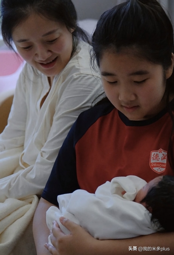 乔杉两个女儿放学后到医院看望妈妈和弟弟,大宝垛垛今年11岁了,和弟弟年龄差不小,抱着弟弟小心翼翼,第二次当姐姐了,垛垛还是那么稳重,莫丹在旁边看着姐弟俩笑得好温暖。