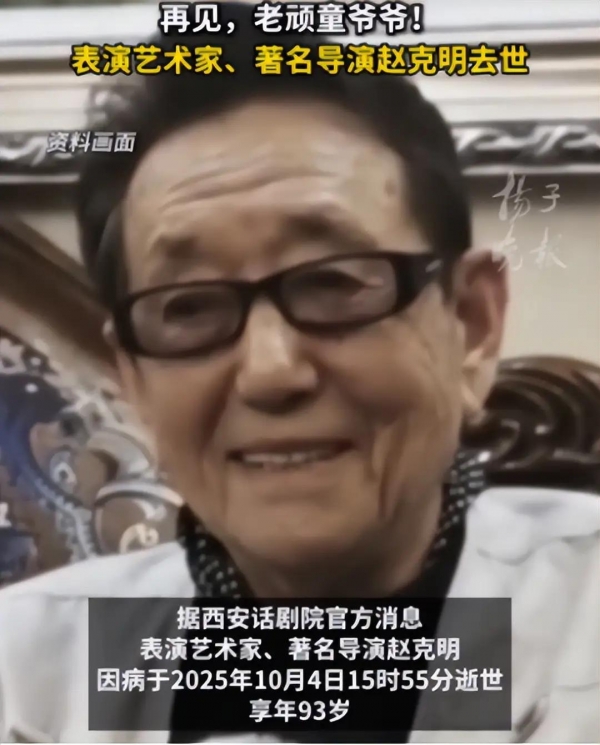 最后一位老爷子是赵克明,活了93岁,算高寿了。他演过电视剧,还导过春晚小品。很多人小时候看的《快乐星球》里那个老顽童爷爷就是他演的。退休后他基本不接戏了,但没想到今年五一还有人去看望他时,他已经卧床不起,现在终于还是没能挺过去。