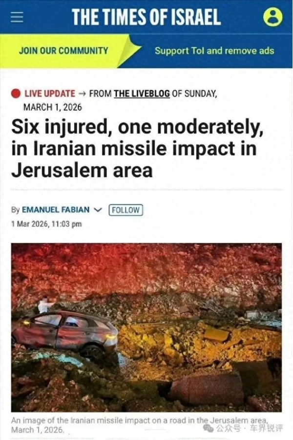 3月1日,伊朗用导弹打击耶路撒冷一条道路时。不幸的是一辆比亚迪元Plus贴身挨了一发导弹。