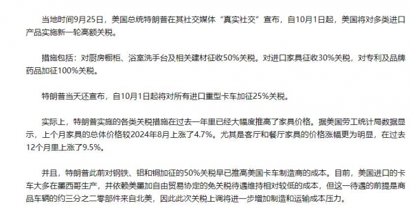 美国本土药企需要中国的原料、欧盟的研发技术,家具商依赖印度的木材加工、中国的五金配件,卡车制造商更是离不开墨西哥的组装产能,强行用关税切割供应链,本质是 "杀敌一千,自损八百"。