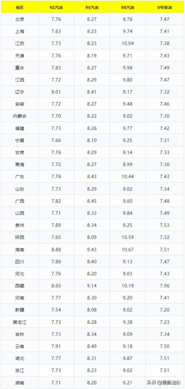 2025年第3轮油价调整: