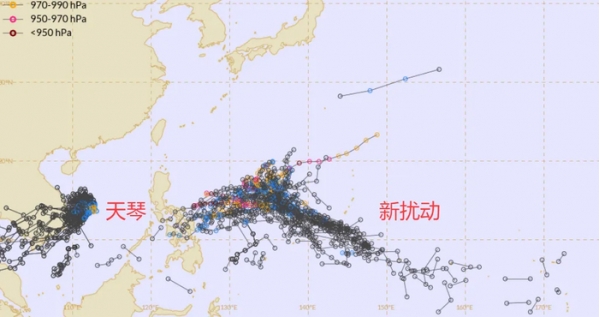 如果要看变数的话,就需要看看西北太平洋区域27号台风天琴的情况,这是南方大范围阴雨的关键。