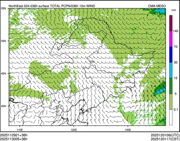 对于这一波寒潮,整体上来说,我国大范围区域还是干冷为主,只有东北,内蒙古方向有雨雪活动,其我国预警数据显示,在内蒙古中东部、东北地区及新疆北部等地有小到中雪,局地有大雪。