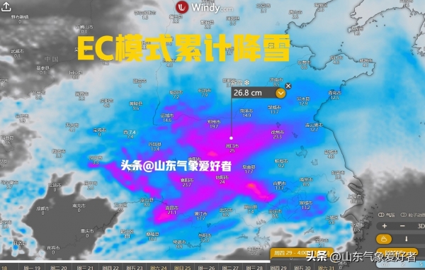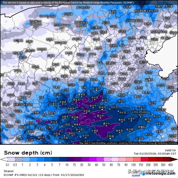 今天晚上数值预报更新的数据显示,本轮降雪的中心依旧在河南、陕西南部附近。河南大部、陕西南部、山西南部、安徽北部以及山东的西南部等地积雪深度可达到7~10厘米,最新的预报与先前的预报情况几乎一致。对于山东来说,EC模式预测大部地区依旧在3厘米以上,山东的南部地区积雪可达到5~10厘米。