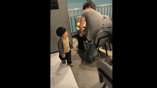 这一幕被拍下后,网友们纷纷调侃:"孩子心里估计都凌乱了,以为爸爸在外面有别的小朋友了。""小小年纪承受了不该有的疑惑。""太可爱了,找不到爸爸委屈坏了。"