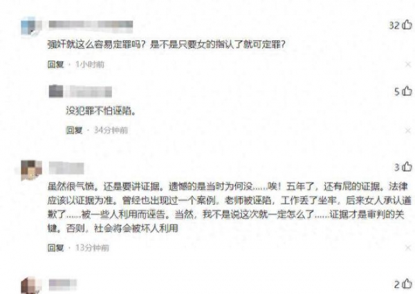 另一些网友则认为,仅仅依靠女性的指认是不够的,必须有确凿的证据支持。他们质疑道,五年过去了,这些证据是从哪里来的呢?是否足够证明男老师的罪行呢?