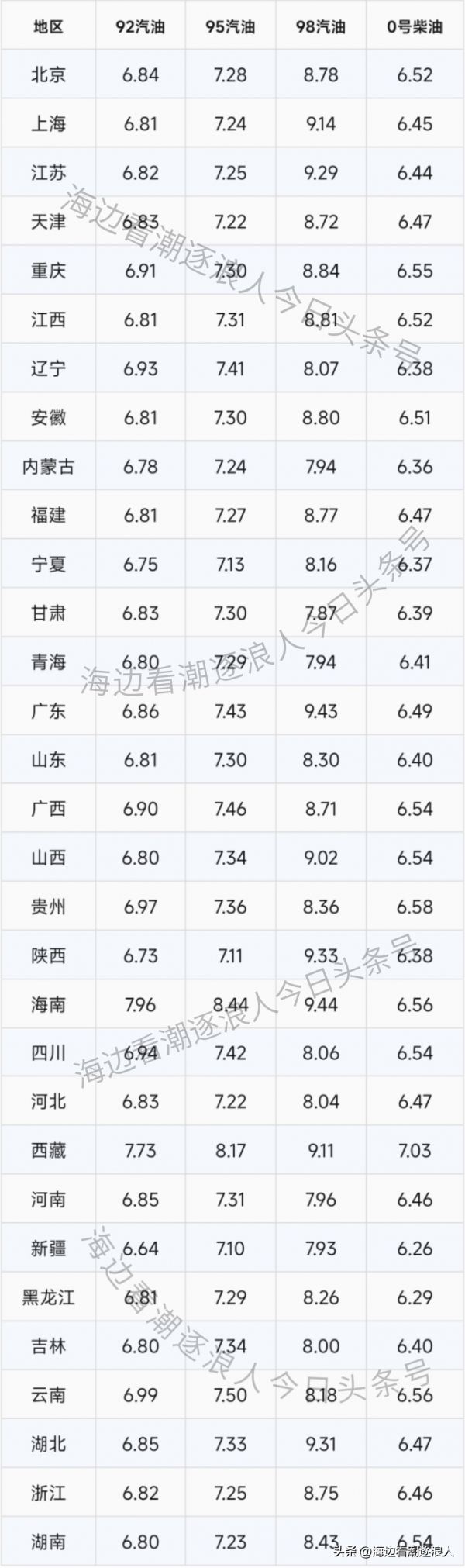 对于黑龙江、新疆、云南、陕西、四川、内蒙古、贵州、青海、西藏等省份的油价没有实行统一价格,这边列出的是省会城市的最高零售价格。