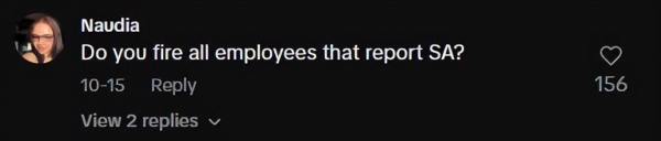 "是不是所有举报性骚扰的员工都会被你们炒鱿鱼啊?"