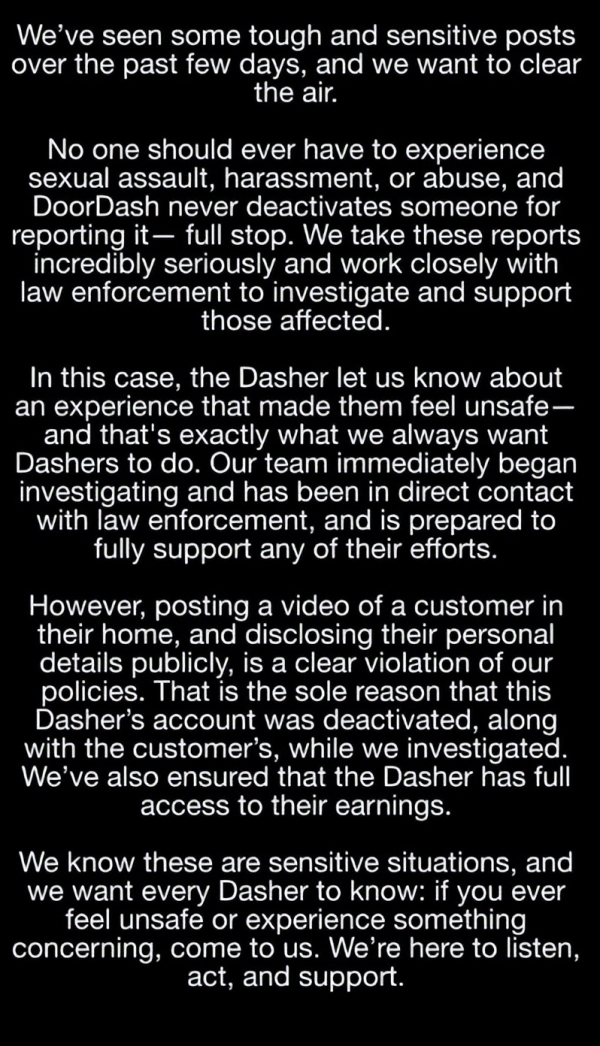 (Doordash的声明原文)